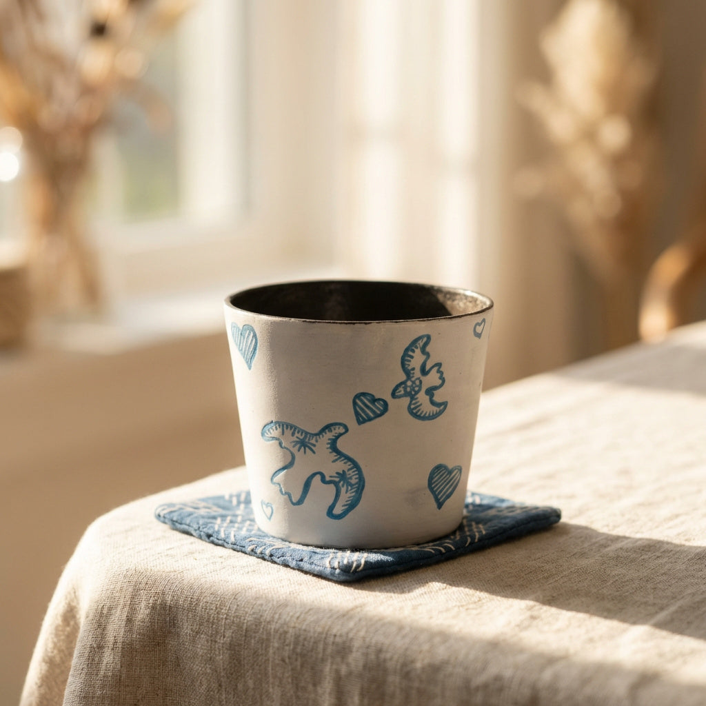 The Story: "Once we dreamt that we were strangers..." Rabindranath Tagore's words find a permanent home on clay. This cup is a silent reading companion, whispering lines from Stray Birds.
